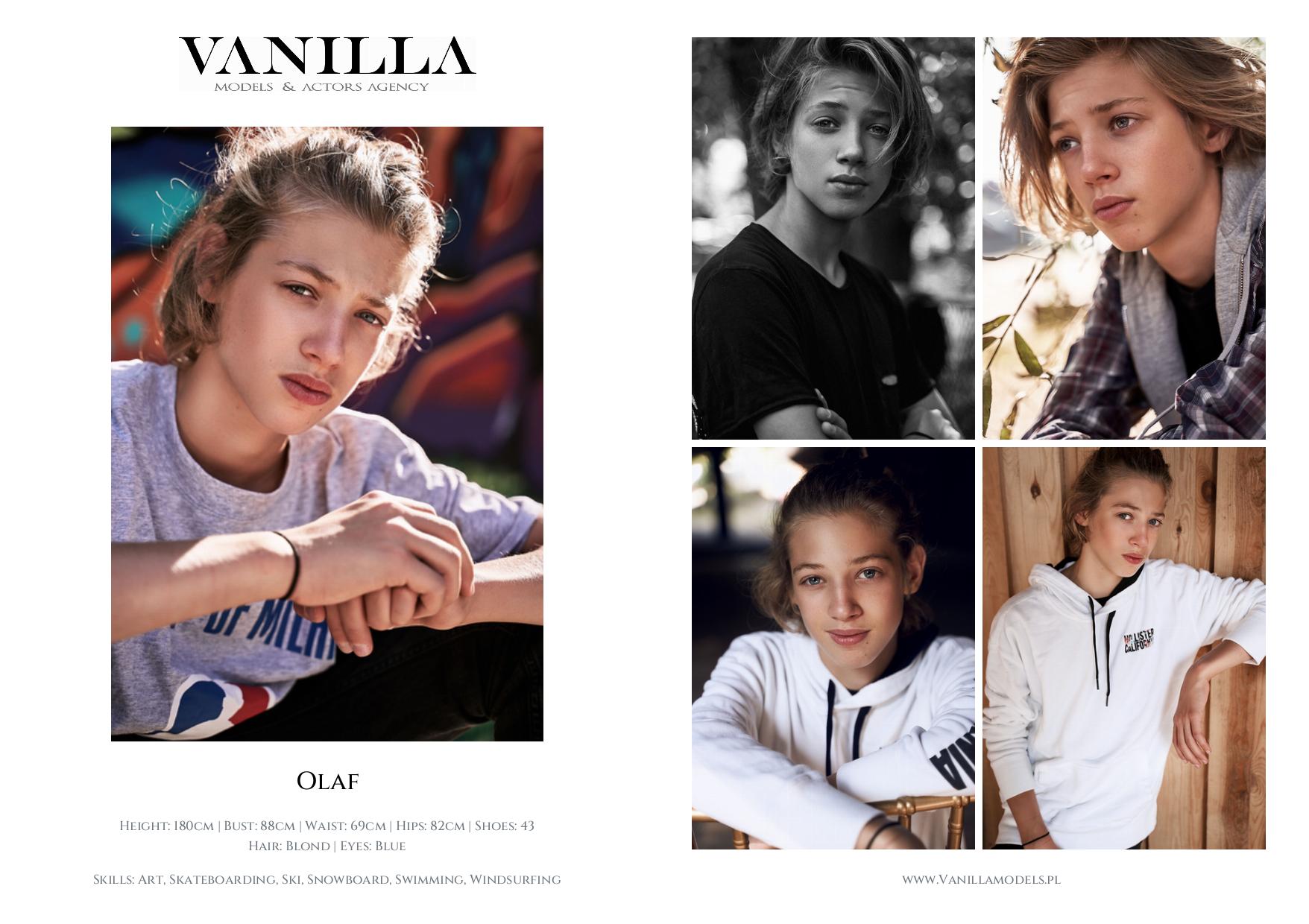 Skills: Acrobatics, Art, BMX, Dance, Driving license A, Driving license B, Horse Riding, Ice skates, Joga, Martial Arts, Musician, Rollerblades, Singing, Skateboarding, Ski, Snowboard, Stuntman, Swimming, Windsurfing, English, Spanish