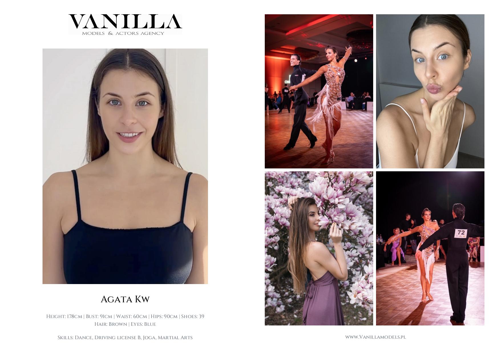 Skills: Dance, Driving license B, Joga, Martial Arts, English, French, Italian, Spanish