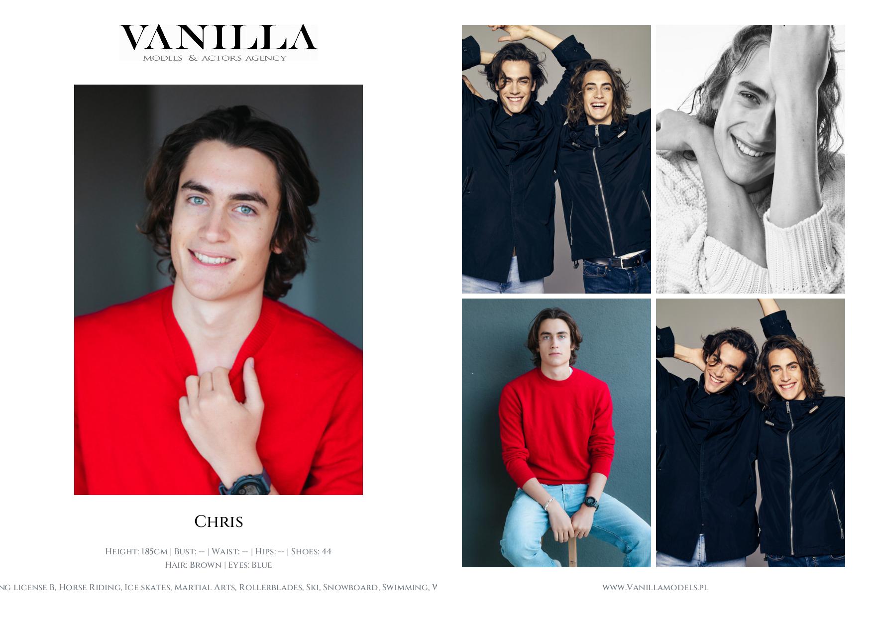 Skills: Driving license B, Horse Riding, Ice skates, Martial Arts, Rollerblades, Ski, Snowboard, Swimming, Windsurfing, English, French, Other, Spanish