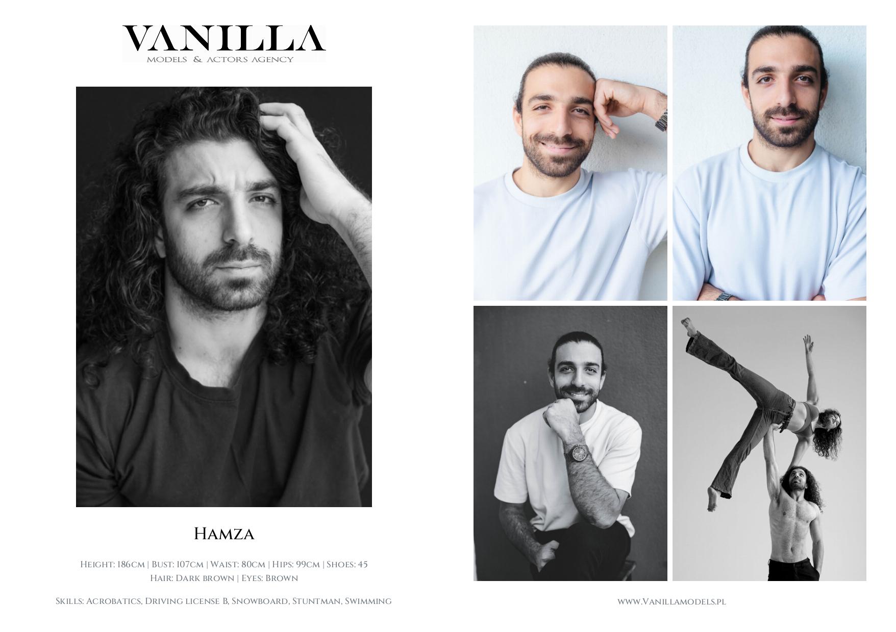 Acrobatics, Driving license B, Snowboard, Stuntman, Swimming, English, Other