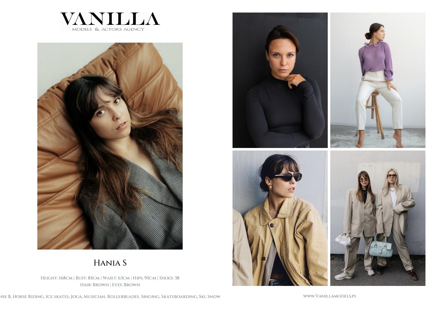 Skills: Art, Dance, Driving license B, Horse Riding, Ice skates, Joga, Musician, Rollerblades, Singing, Skateboarding, Ski, Snowboard, Swimming, Windsurfing, English