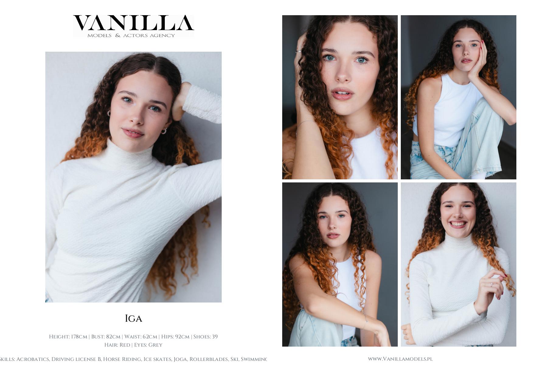 Skills: Acrobatics, Driving license B, Horse Riding, Ice skates, Joga, Rollerblades, Ski, Swimming, English