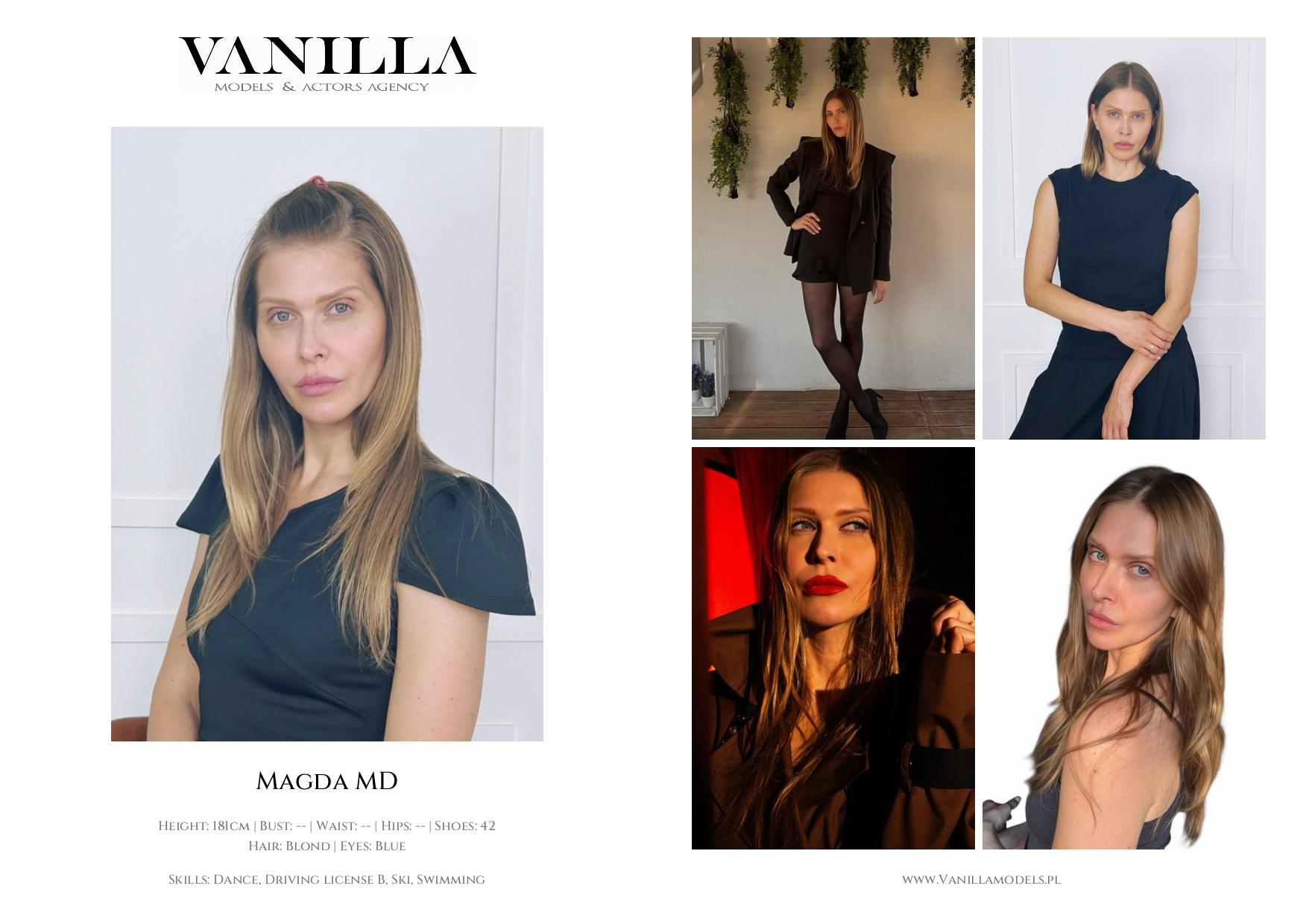 Skills: Dance, Driving license B, Ski, Swimming, English, French, German, Spanish