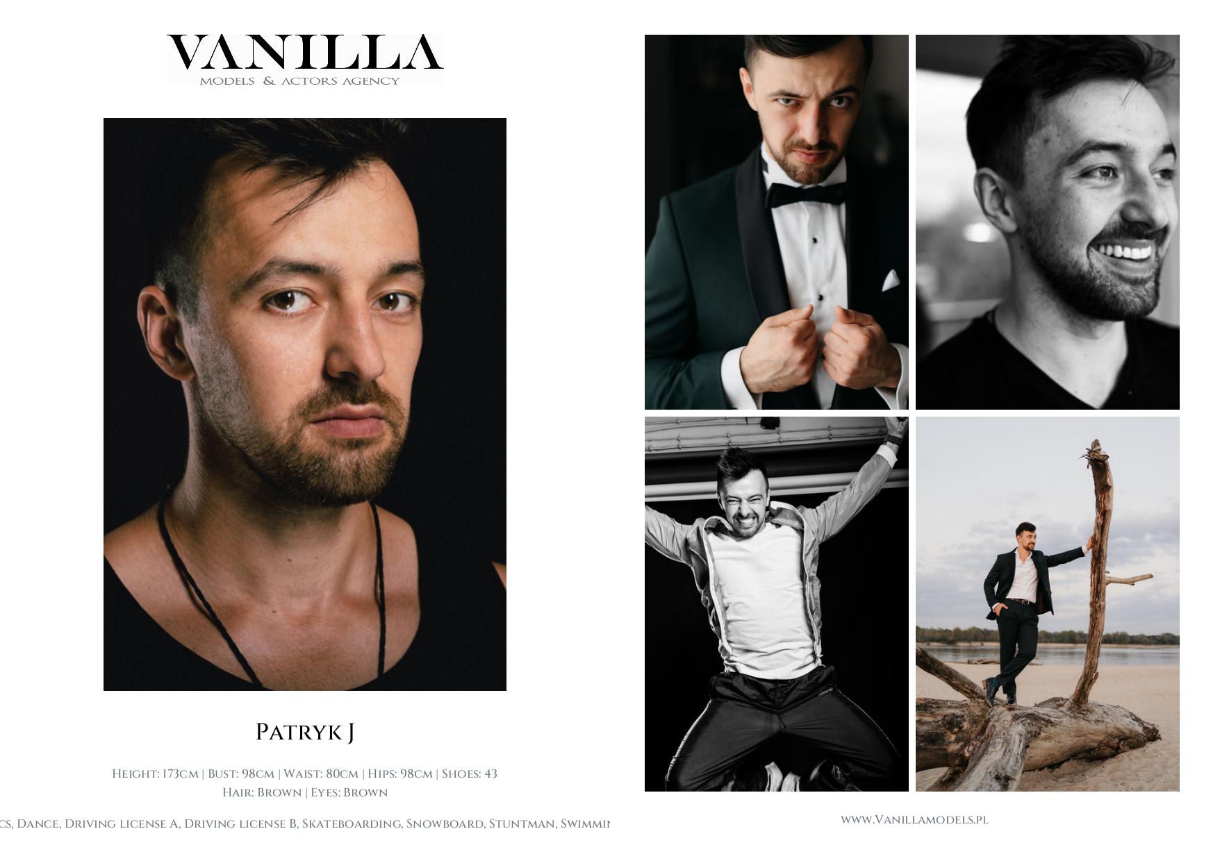 Skills: Acrobatics, Dance, Driving license A, Driving license B, Skateboarding, Snowboard, Stuntman, Swimming, Windsurfing, English